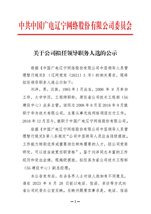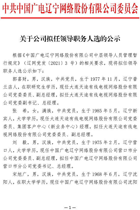 關于公司擬任領導職務人選的公示